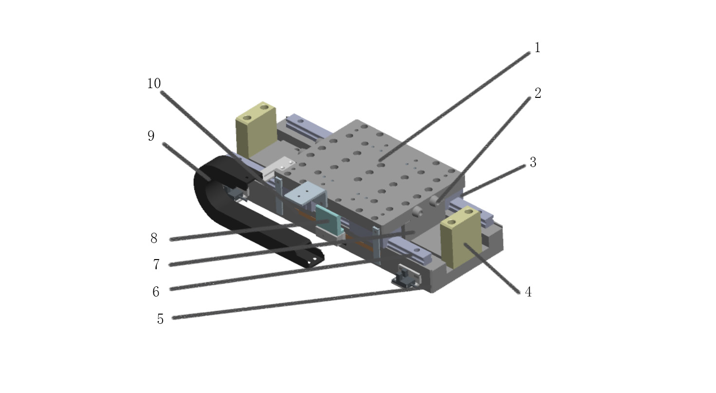 6-導軌 7-光柵尺 8-排線拖鏈 9-緩沖環(huán) 10-定子固定座