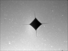 以49.03~980.7N的負(fù)荷,將相對面夾角為136°的方錐形金剛石壓入器壓材料表面,保持規(guī)定時間后,用測量壓痕對角線長度,再按公式來計算硬度的大小。它適用于較大工件和較深表面層的硬度測定。維氏硬度尚有小負(fù)荷維氏硬度,試驗負(fù)荷1.961~<49.03N,它適用于較薄工件、工具表面或鍍層的硬度測定;顯微維氏硬度,試驗負(fù)荷<1.961N,適用于金屬箔、極薄表面層的硬度測定。