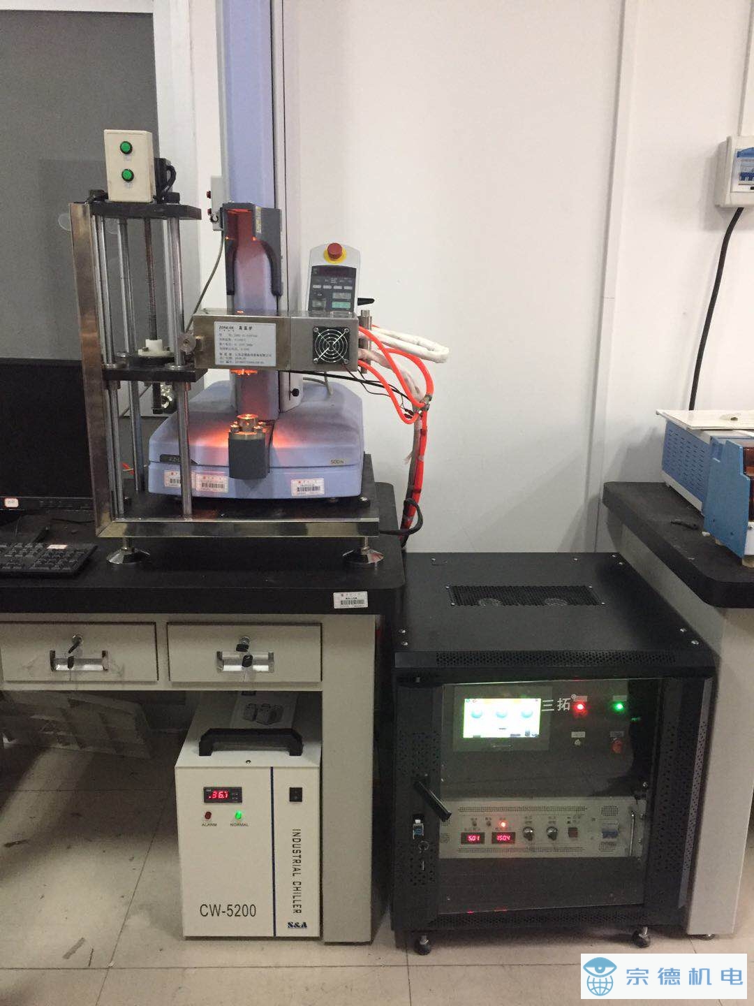 采用恒控溫冷水機(jī),最高控溫溫度40°C 。恒控溫式冷水機(jī)不僅可以保證爐體外表面保持恒溫,還能起到穩(wěn)定和微調(diào)爐溫的作用,使?fàn)t內(nèi)的溫度更加精準(zhǔn),有利于提高試驗(yàn)精度。