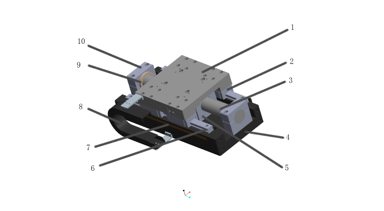 6-導軌 7-光柵尺 8-排線拖鏈 9-緩沖環(huán) 10-定子固定座